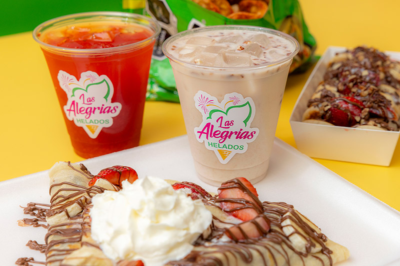 Come check out Heladería Las Alegrias! Enjoy delicious smoothies, snacks, ice cream, popsicles, crepes, and more. A sweet experience awaits! 🍦✨